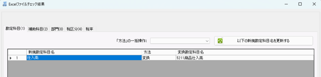 上の画面ですと、「補助科目」がマスタと一致していないことがわかります。
