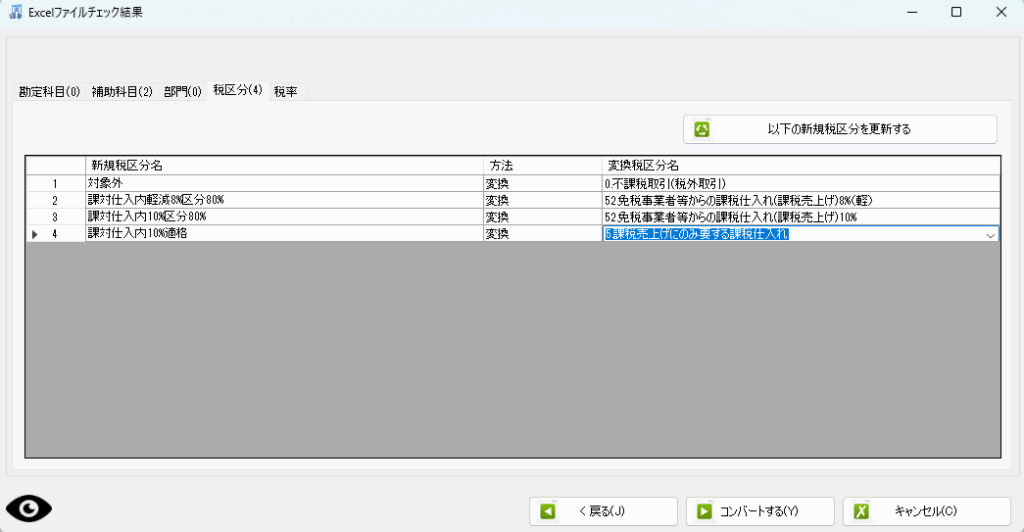 同じようにして税区分なども、弥生会計のものからTKCのものに変更する設定をしましょう。