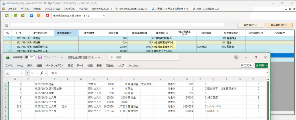 例えばTKCの会計ソフトでは、HAYAWAZAで作成したマスタを含んだ仕訳を、そのまま取り込むことはできません