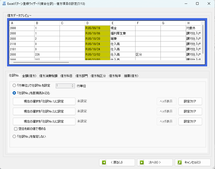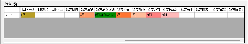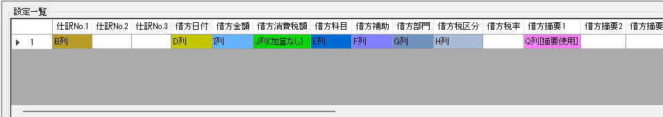 仕訳ナンバーから順に、該当の列を指定していきます。