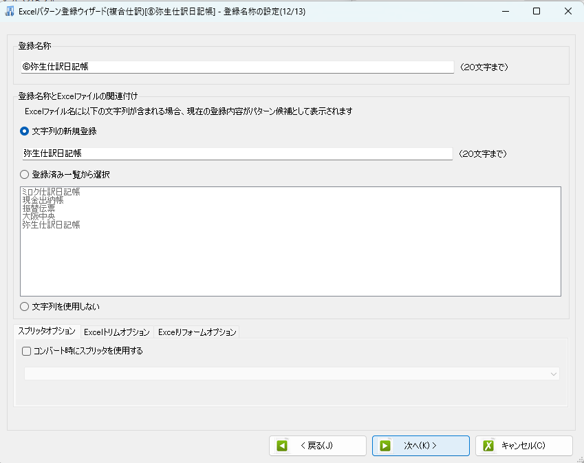 パターンの名称と、ファイル名の紐づけ画面です。