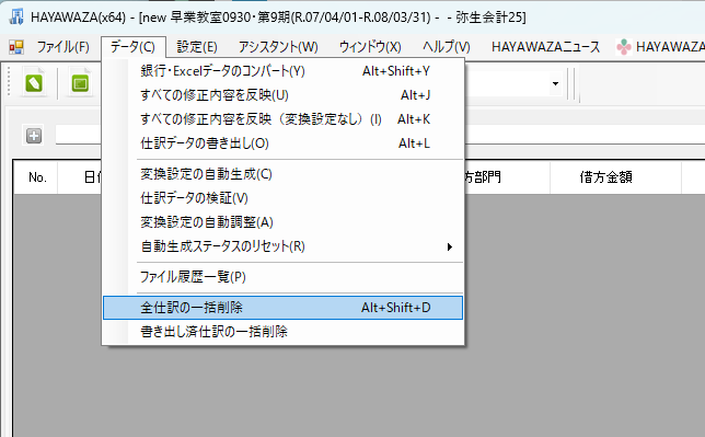 未変換リストの仕訳や、仕訳エディタの未書き出し仕訳は削除しません。