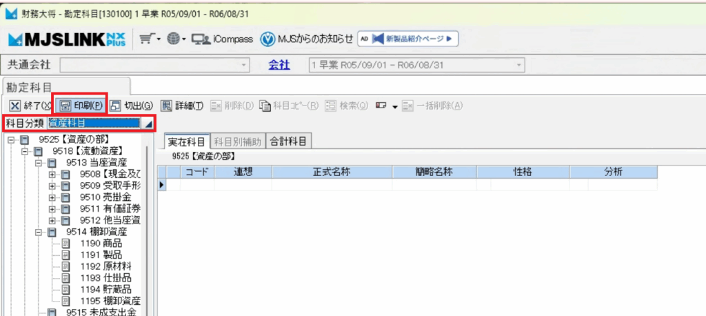 補助科目の場合は「科目別補助登録リスト」を選択します。