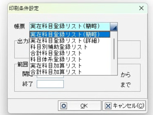 勘定科目の場合は、リストから「実在科目登録リスト(簡略)」を、